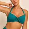 Modelagem: Estruturada no estilo meia taça, com aro e bojo desenhados para oferecer sustentação superior e um decote deslumbrante. A amarração no pescoço e nas costas garante o ajuste ideal.