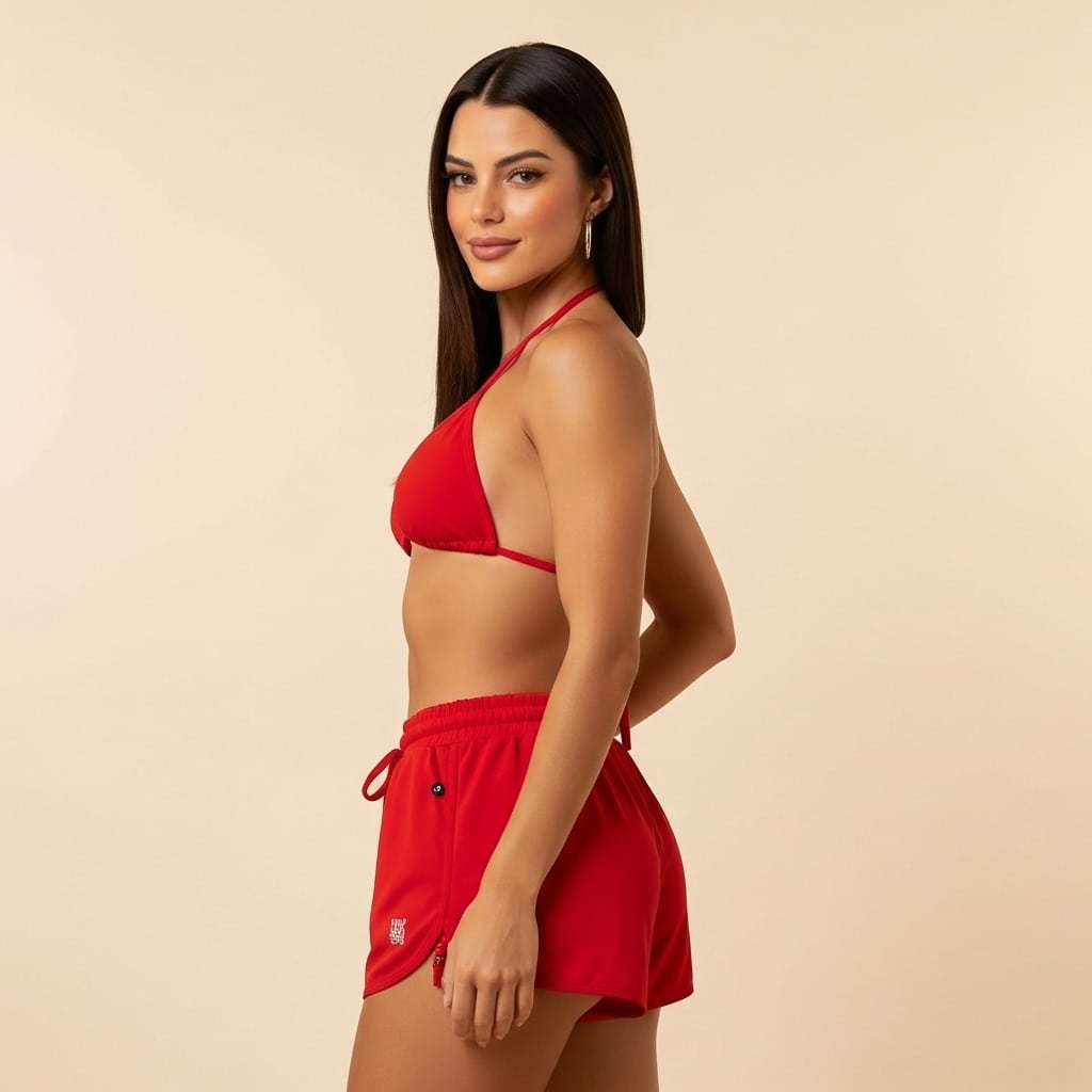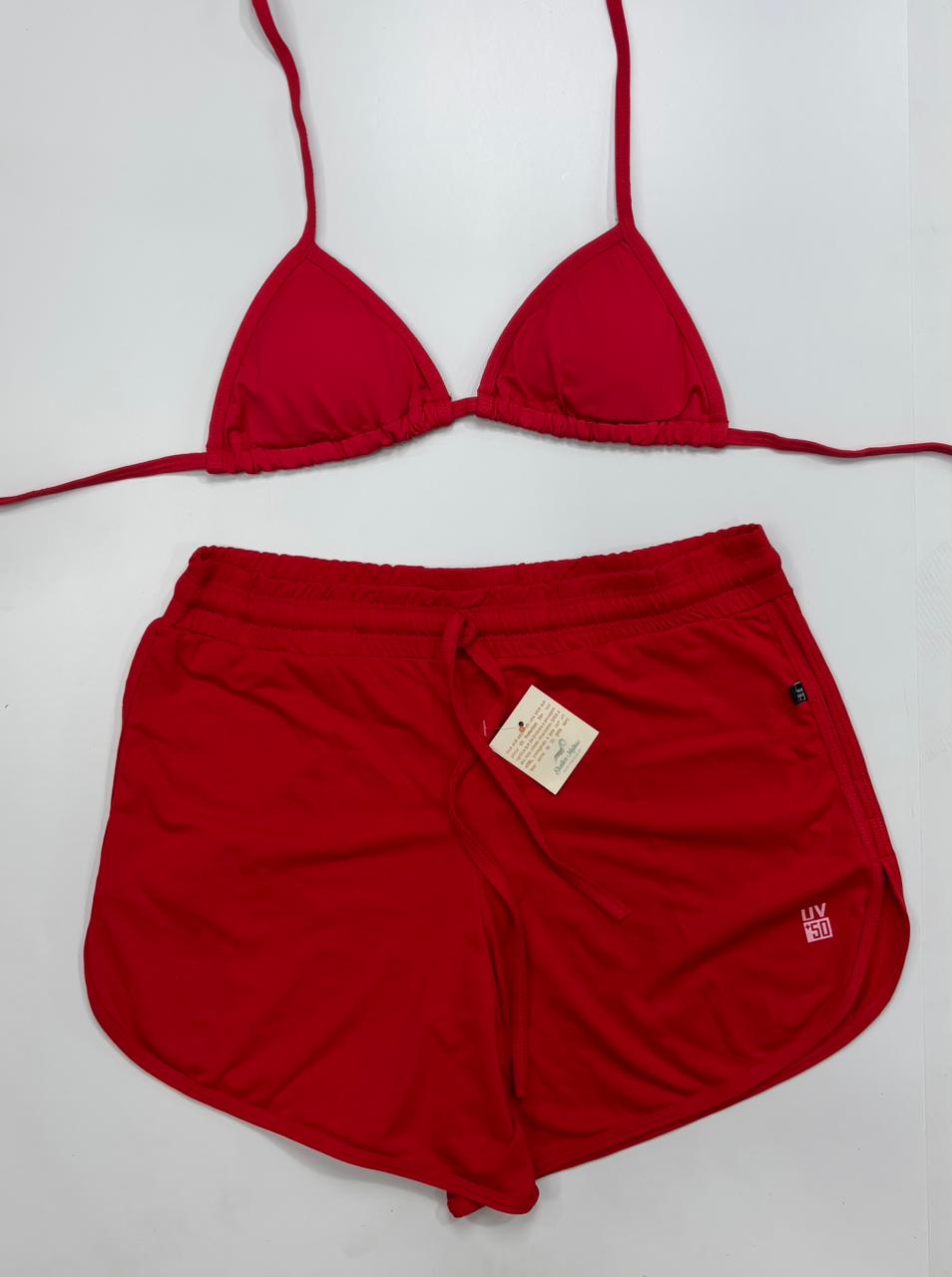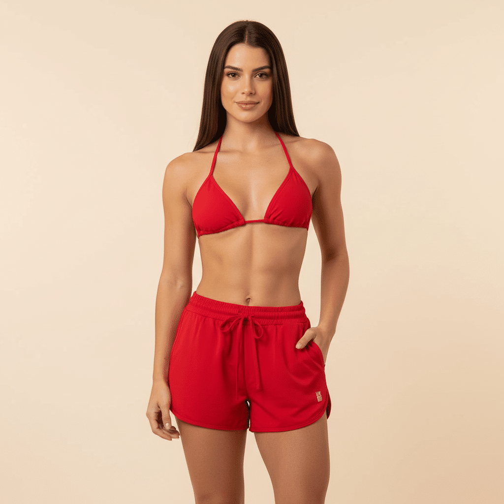 Eleve o seu visual de verão com a energia vibrante do vermelho e a segurança da proteção solar! Este conjunto une a delicadeza clássica do biquíni cortininha com a praticidade de um short tecnológico, garantindo que você se sinta poderosa, confortável e protegida em qualquer aventura sob o sol. Não espere para brilhar na sua próxima viagem!