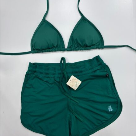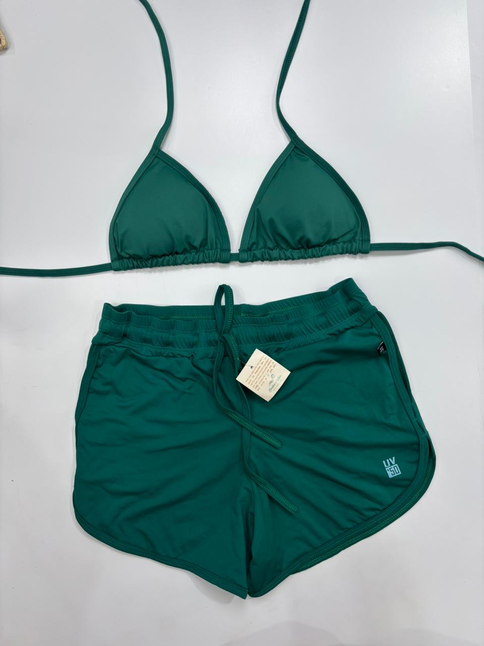 Sinta a liberdade e a proteção que você merece com o nosso Conjunto Verde Esmeralda, o equilíbrio perfeito entre estilo esportivo e sofisticação. Com tecnologia UV 50+ integrada, ele é o aliado ideal para quem busca conforto e segurança para curtir o sol com total confiança. Garanta o seu e esteja pronta para brilhar com a energia vibrante da Caiçara Beachwear!