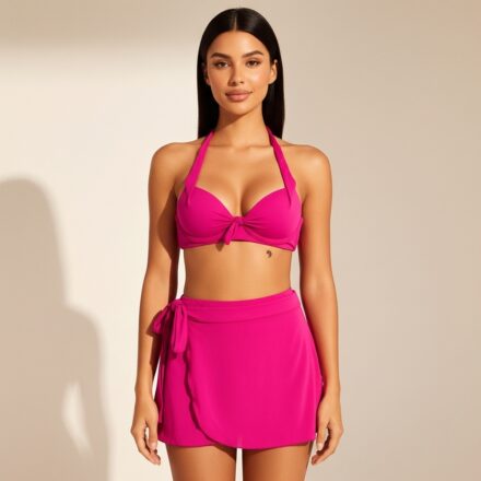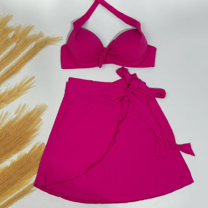 Desenhado para realçar o que você tem de mais belo, este conjunto pink é a união perfeita de sustentação e elegância. O top meia taça modela o busto com perfeição, enquanto a saia pareô adiciona um charme irresistível e versátil ao look. Sinta-se absolutamente deslumbrante e confiante em qualquer ocasião.