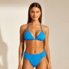 Modelagem: Top estruturado com aro e bojo, estilo meia taça, que oferece máxima sustentação e conforto. Possui amarração no pescoço e nas costas para o ajuste ideal. Saia curta modelo pareô (envelope) com amarração lateral que regula perfeitamente na cintura.