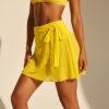 Modelagem: Curta e transpassada no estilo pareô, com amarração lateral que se ajusta perfeitamente ao corpo. Seu design envelope cria um caimento fluido e um movimento super charmoso.